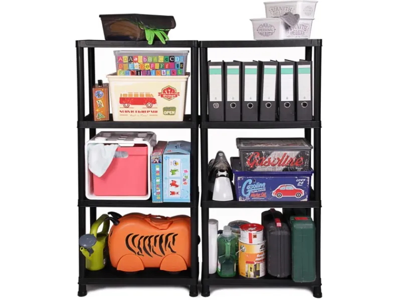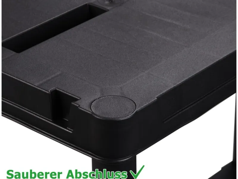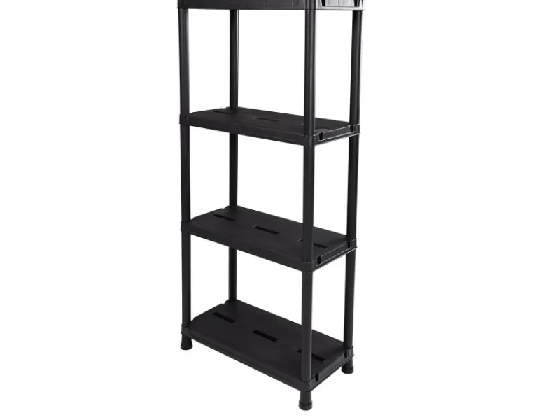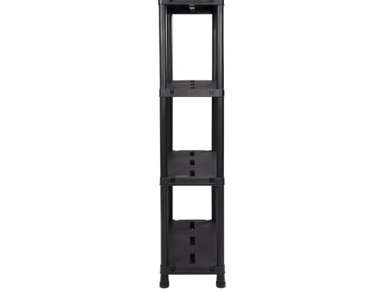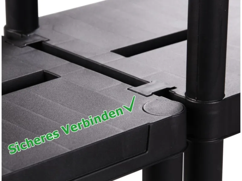 Herumstehende Werkzeugkoffer, Produktverpackung, die man vielleicht noch braucht, Ordner, die im Büro nichts mehr zu suchen haben, aber noch benötigt werden und das Spielzeug der Kinder, das nach dem letzten Waldabendteuer dreckig geworden ist. Wer kennt das nicht? Aber wohin damit? Mit unserem anthrazitfarbenen Kunststoffregal bieten wir den optimalen Helfer, um Ihre Gegenstände geordnet und einfach zu verstauen. Mit einer Größe von gerade einmal 60 x 30 x 138 (H) cm passt es in jede noch so kleine Nische und lässt sich, dank seines geringen Gewichtes von nur ca. 3,3 kg leicht um positionieren. Dieses Regal bietet 4 geschlossene Böden aus hochwertigem Kunststoff, die mit 50 kg, für den untersten Boden, und jeweils mit 25 kg, für die Böden darüber, belastet werden können. So finden auch etwas schwerer Koffer oder Kisten auf einer nutzbaren Fläche von 52 x 30 x 39 (H) cm (pro Boden) und einem Maximalgewicht von insgesamt 125 kg ihren Platz in diesem Kunststoffregal und verhelfen dem Steckregal zu einem sichereren Stand. Die 5 Standfüße, welche ganz einfach am untersten Boden angebracht werden, ermöglichen einen Abstand von ca. 7 cm vom Fußboden und stellen sicher, dass dieses Steckregal auch in feuchten Räumen verwendet werden kann. Dank eines einfachen Stecksystems, die Rohre werden in die Böden eingesteckt, lassen sich mehrere dieser Regale zu unterschiedlichen Größen kombinieren und ermöglichen es so, zum Beispiel den Platz unter einer Treppe optimal zu nutzen. Die oberen Rohrenden werden mit Hilfe der mitgelieferten Abdeckkappen sauber verschlossen. Zusätzlich sorgen die Regalverbinder (im Lieferumfang enthalten) dafür, dass die Kunststoffregale untereinander verbunden werden können. Praktisch – die mitgelieferten Wandhalterungen, mit deren Hilfe die Regal sicher an der Wand verschraubt werden können (Schrauben sind nicht im Lieferumfang enthalten). Die Montage ist in nur 10 Minuten, ohne zusätzliches Werkzeug und der beigelegten Aufbauanleitung möglich.