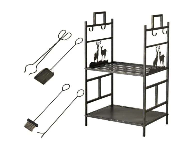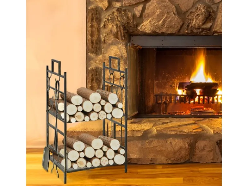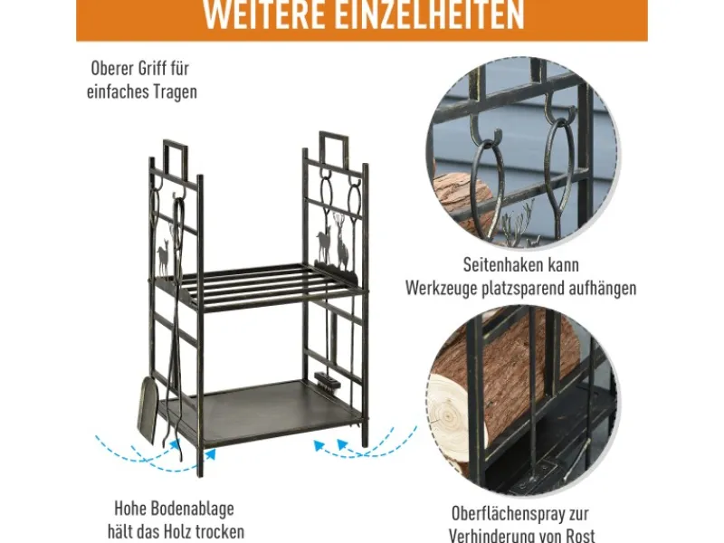 Hot Outsunny Kaminholzständer mit Kaminbesteck 51,5x33x77 cm