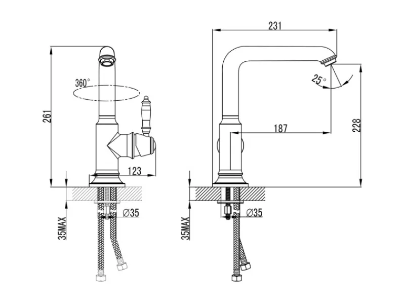 – Diese Mischbatterie kann sowohl als Küchenarmatur oder durch Ihre geringe Höhe als Waschtischarmatur verwendet werden.