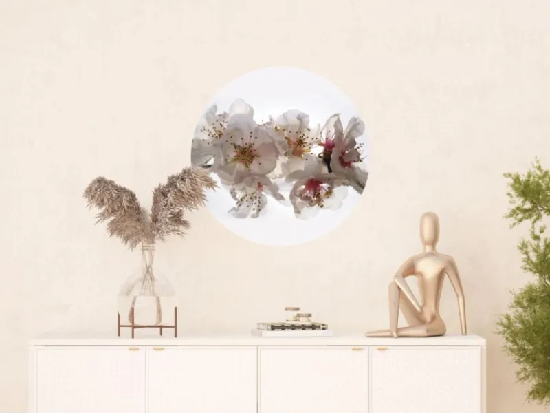 Hot Sanders & Sanders Selbstklebende Runde Tapete Blumen Weiß und Rosa Ø 70 cm 601093