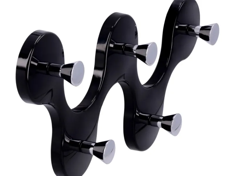 Hot Siro Hakenleiste 01047 Kunststoff Schwarz Chrom Länge 248 mm 5 Haken Schwarz-Chrom