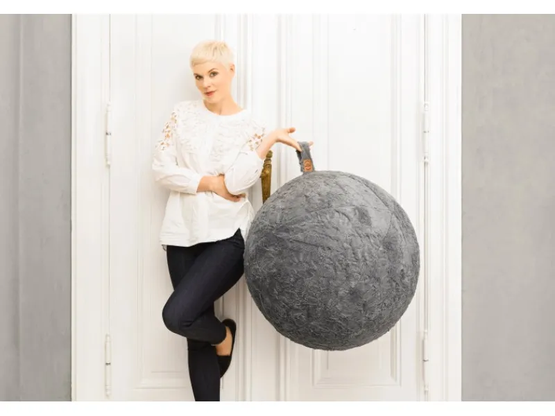 Besonderheit des Hockers ist der waschbare Bezug
