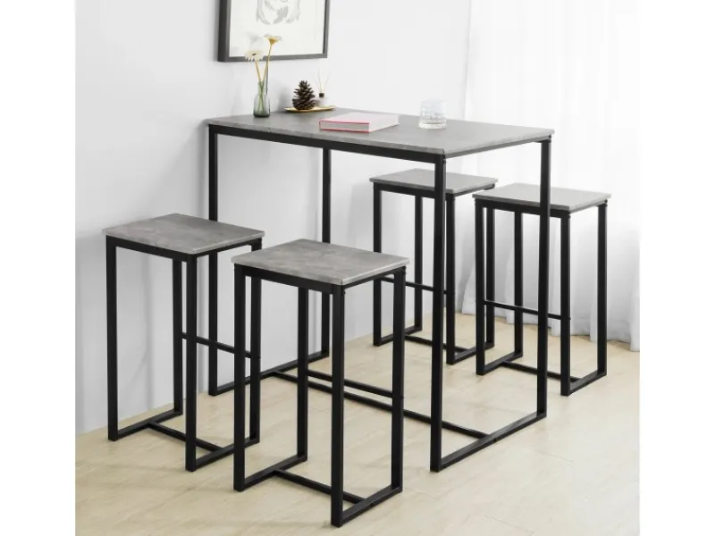 Bartisch und Barhocker aus schwarz pulverbeschichtetem Stahlrahmen mit MDF(E1)-Platten, perfekt für Esszimmer, Wohnzimmer, Küche oder kleine Wohnungen.