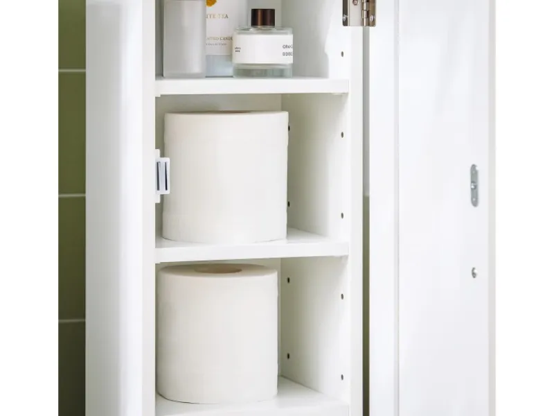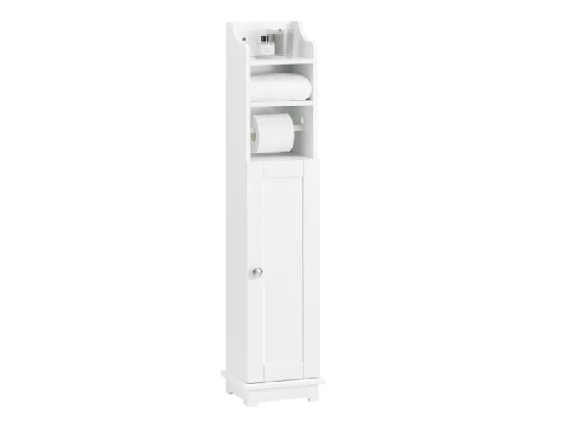 Der schmale Toilettenpapier Schrank ist das ideale Möbel für Nischen oder kleine Bäder.