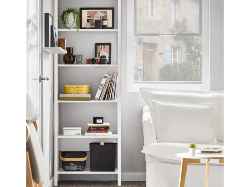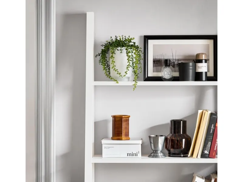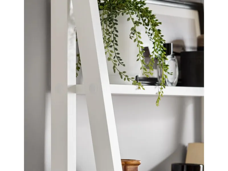 Das Leiterregal ist eine elegante und platzsparende Lösung mit viel Stauraum.