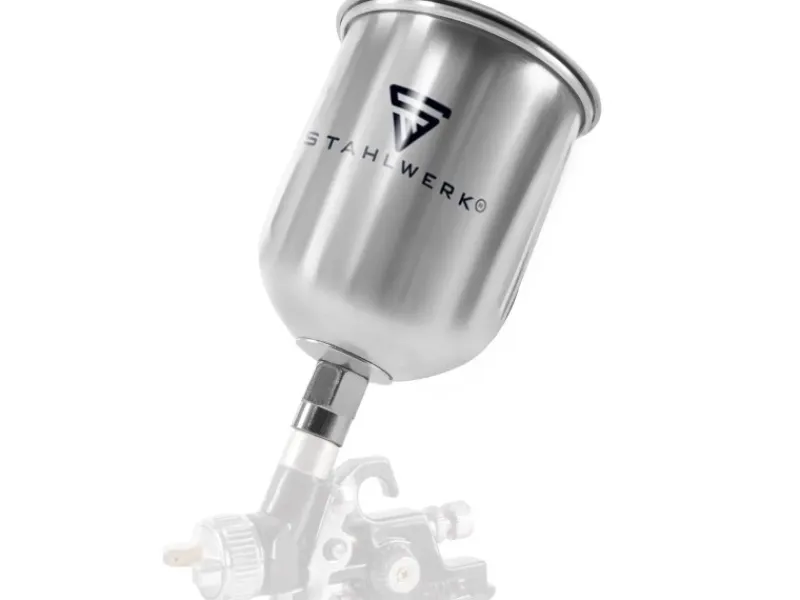 – Die Sprühpistolen Lackbecher sind perfekt abgestimmt auf die STAHLWERK LVLP Lackierpistole SG-125 ST und HVLP Lackierpistole SG-600 ST, lassen sich aber auch für Fremdgeräte mit entsprechender technischer Übereinstimmung verwenden.