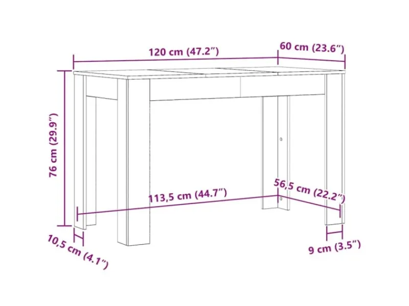 Gesamtabmessungen: 120 x 60 x 76 cm (L x B x H)