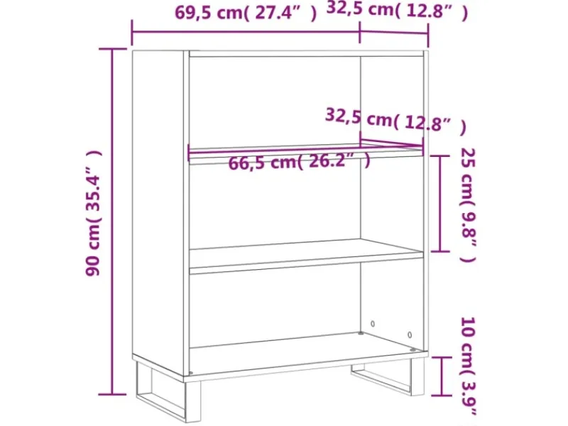 Gesamtabmessungen: 69,5 x 32,5 x 90 cm (L x B x H)