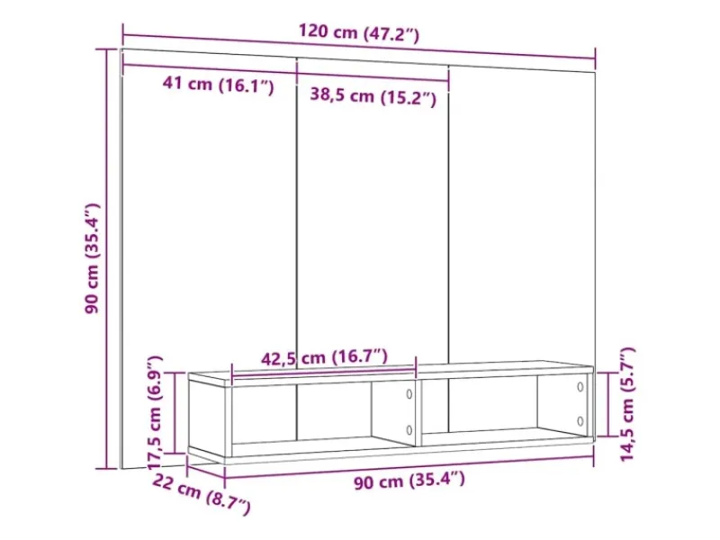 Gesamtabmessungen: 120 x 23,5 x 90 cm (B x L x H)