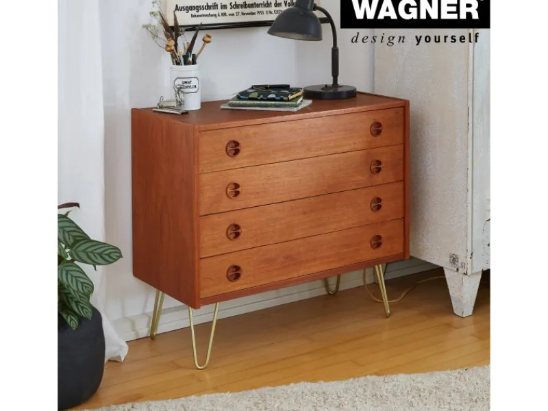 Das Wagner Möbelbein Hairpin Design ST 8225 ist aus pulverbeschichtetem Stahl gefertigt. Das Hairpin-Design die stylishen Möbelfüße im angesagten Midcentury Style verleihen vorhandenen oder selbst gebauten Möbelstücken wie z. B. Beistelltischen, Kommoden, Betten, Polstermöbeln oder Regalen einen zeitgemäßen Retro-Look. Eine integrierte Anschraubplatte macht die Montage der schicken Möbelfüße schnell und bequem: Einfach anschrauben – fertig.