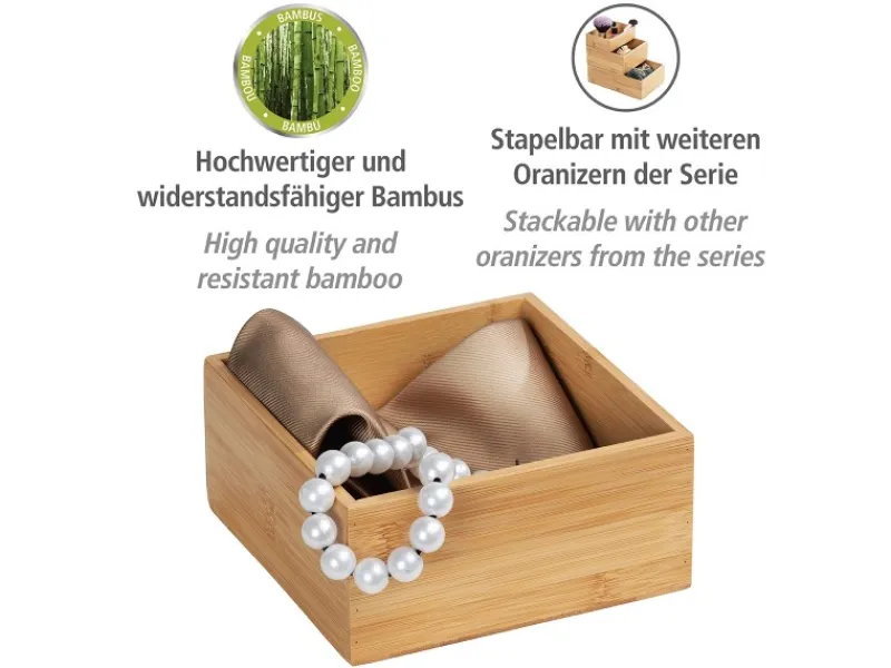 Gefertigt ist die attraktive Box aus hochwertigem Bambus, welcher hart und widerstandsfähig ist.