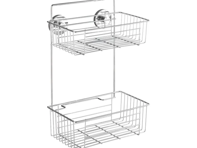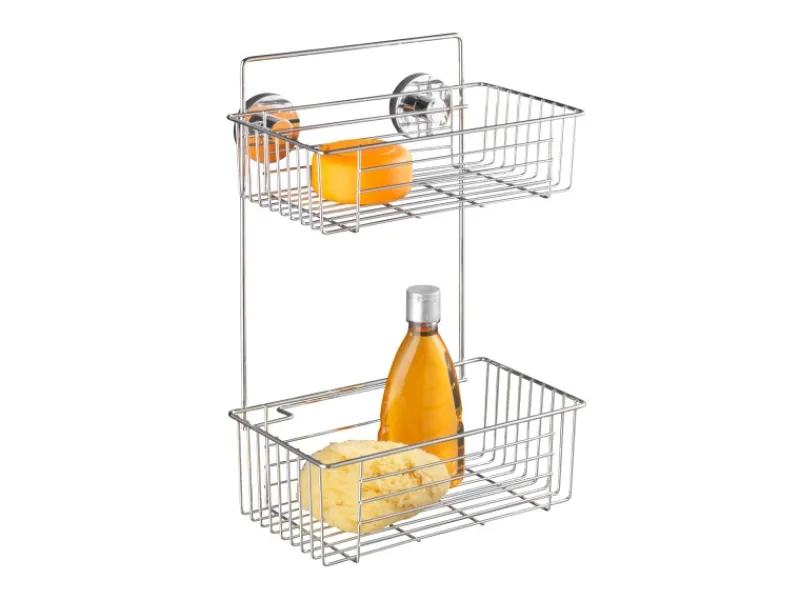 Das Vacuum-Loc Wandregal Bari bietet starken Halt und überzeugende Qualität auf zwei Etagen. Verteilt auf zwei Körbe, können Pflege-Artikel übersichtlich untergebracht werden. Alle Bad-Accessoires sind so stets dekorativ griffbereit.