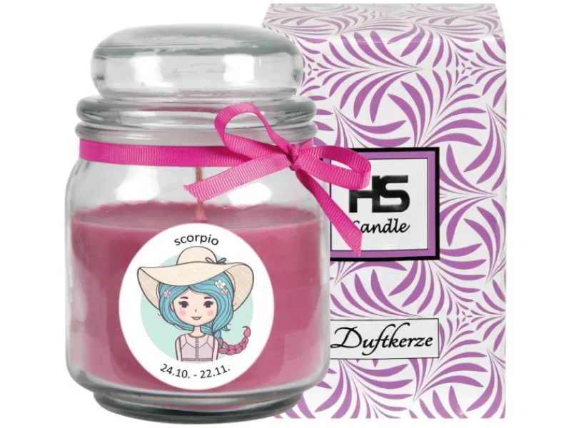 HS Candle Duftkerze & Glas Sternzeichen Lavendel 70 Stunden Skorpion