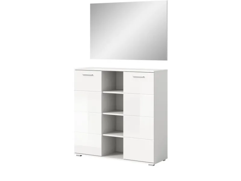 2-teiliges Garderoben Set Grazie (110 x 191 cm) mit Schuhschrank und Spiegel.