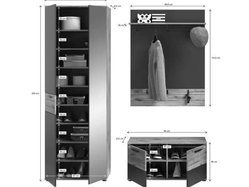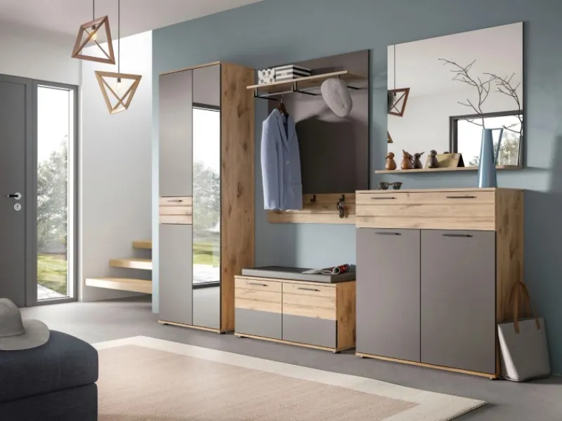 Garderoben-Set Tomaso in Basalt grau mit Eiche, 3-teilig