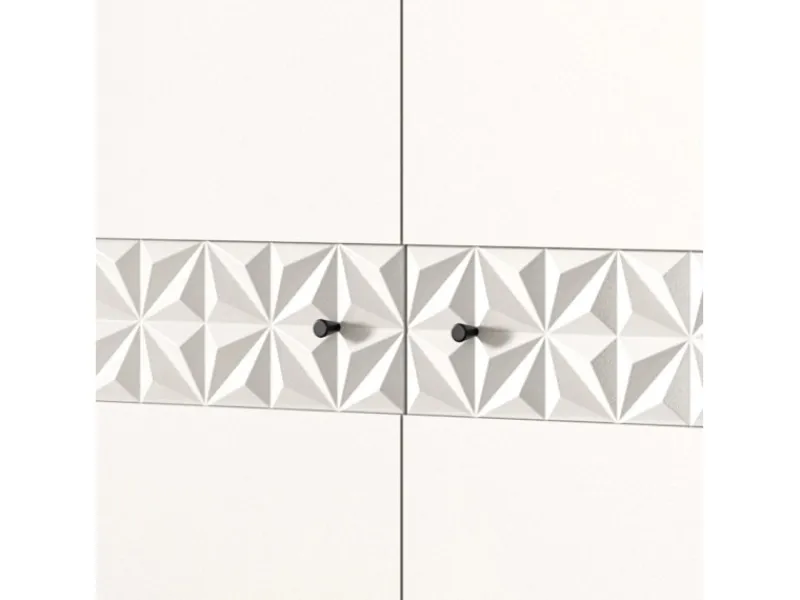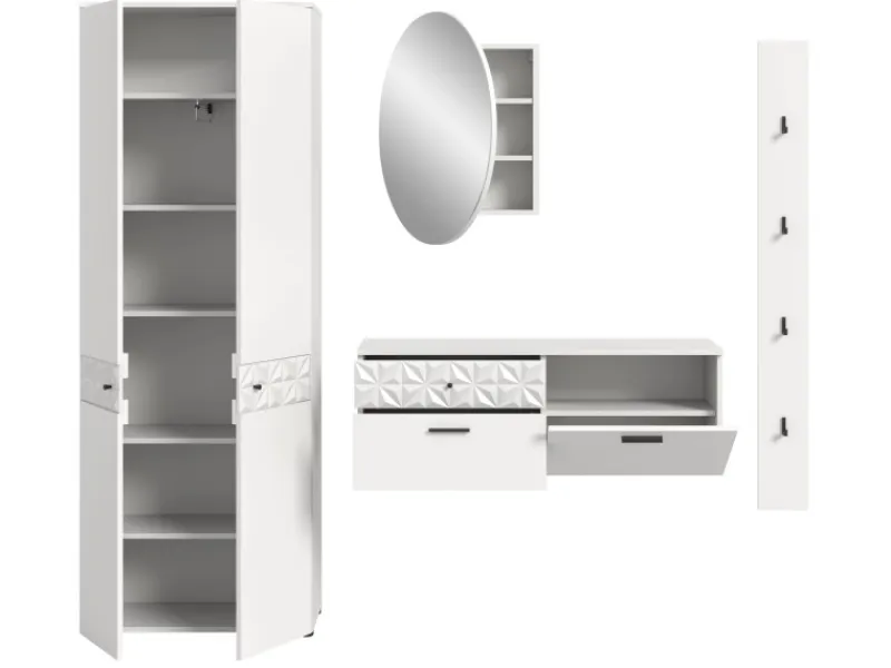 4-teiliges Garderoben Set „Relief“ in Weiß Hochglanz mit 3-D Struktur, 226 x 192 x 35 cm