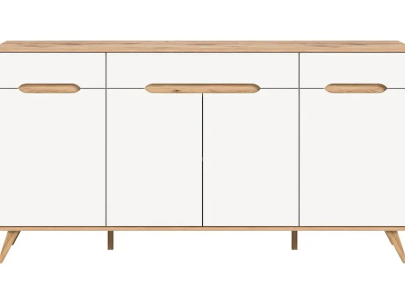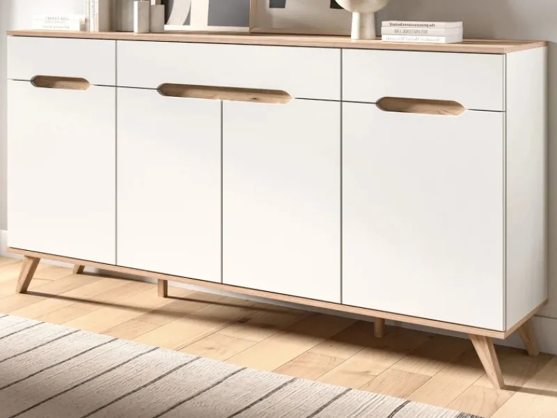 Sideboard Hygge im skandinavischem Design, weiß und Nox Eiche Dekor.