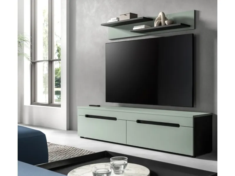 Wohnwand „Cooper“ von Inn.Furn, Salbei Grün & Basalt Grau, 2-teilig