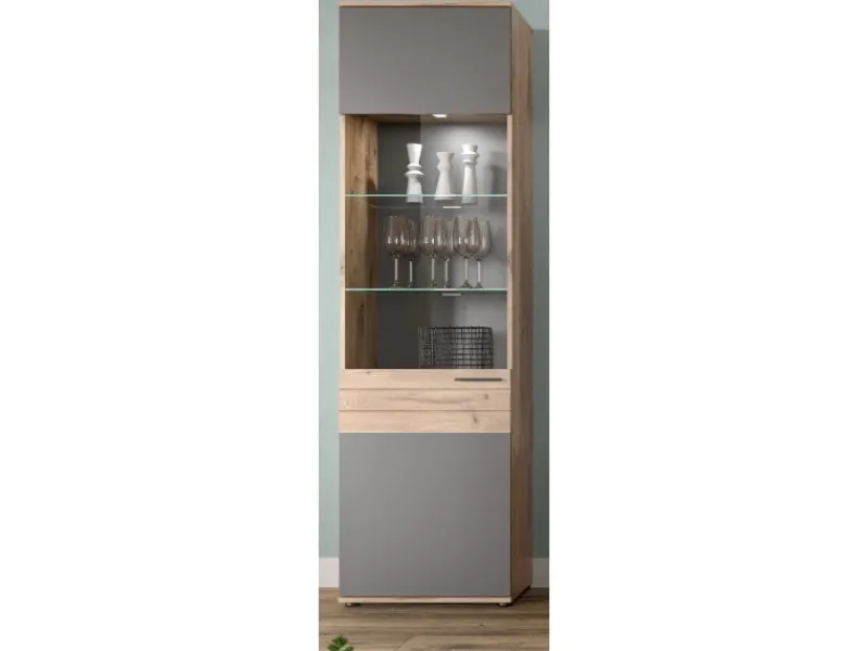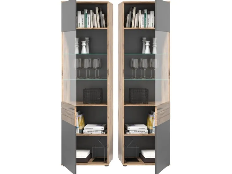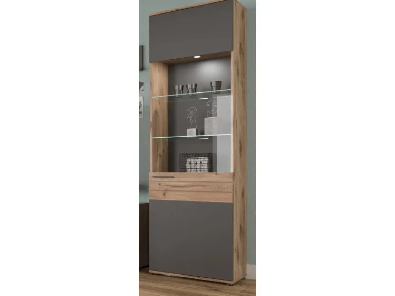 Stauraumvitrine Tomaso in Nox Eiche mit Basalt grau, 57 x 200 cm