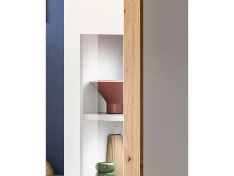3 Klappen, 6 geschlossene Fächer, 4 Vitrinenfächer und verstellbare Böden für flexible Nutzung