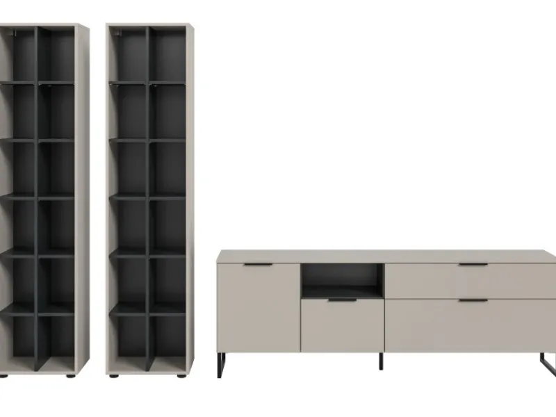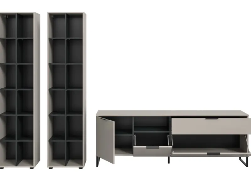 Wohnwand „Morena“ von Inn.Furn, 3-teilig, 305 x 192 cm, Kaschmir & Schwarz