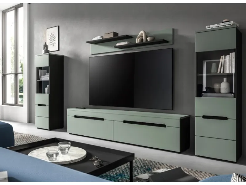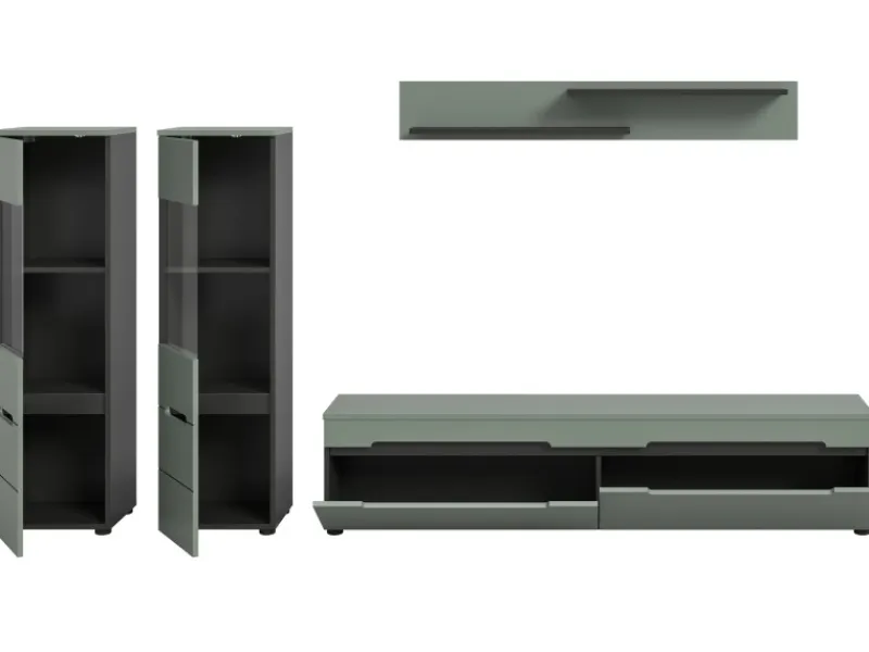 Wohnwand „Cooper“ von Inn.Furn, Salbei Grün & Basalt Grau, 4-teilig