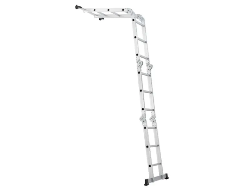 Unsere Vielzweckleiter ist ein echtes Multitalent. Das ausgeklügelte Gelenksystem mit 6 Gelenken teilt die Mehrzweckleiter in 4 Elemente mit jeweils 3 Sprossen. So können Sie die Leiter je nach Bedarf als Anlegeleiter oder Bockleiter verwenden. Voll ausgeklappt erreicht die Leiter eine Höhe von 3,6 Meter.