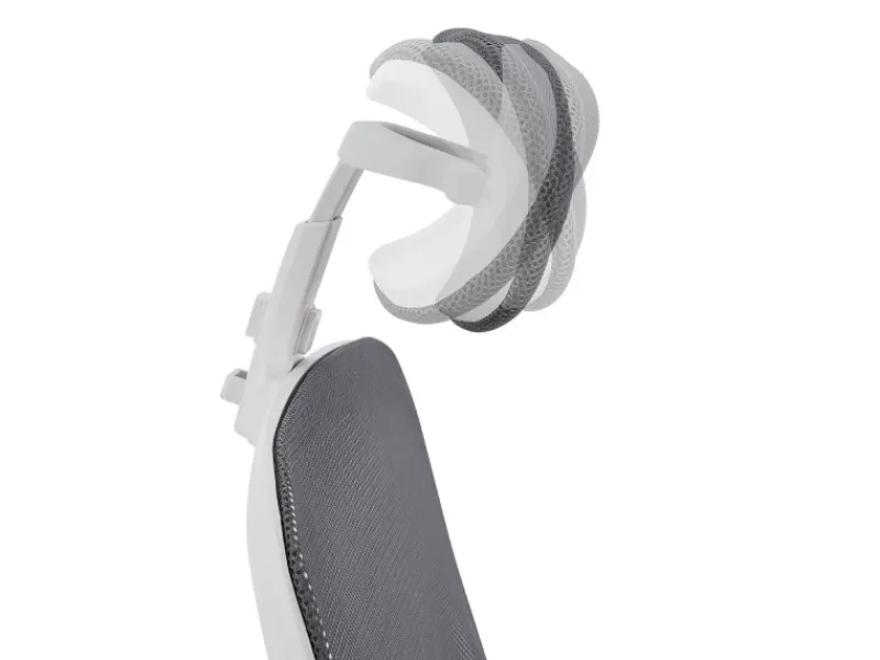 Die ergonomisch geformte Rückenlehne passt sich sanft der Wirbelsäule an und fördert eine gesunde Sitzhaltung. Zusätzlich bietet die Lendenwirbelstütze auch bei längerem Sitzen Komfort. Die Kopfstütze und Armlehnen machen den Arbeitstag noch angenehmer.