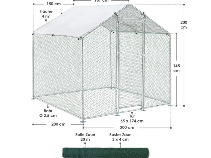 – Zaun: 3 x 4 cm Raster, Dicke 0,5 mm