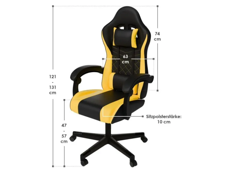 Der Gamingstuhl HyperSeat von Juskys vereint ergonomisches Design und hohen Komfort für Gaming-Sessions und Büroarbeiten. Der Stuhl aus Kunstleder ist höhenverstellbar, verfügt über eine verstellbare Rückenlehne und gepolsterte Armlehnen. Das stabile Nylonfußkreuz und die Konstruktion sorgen für Langlebigkeit. Ideal für große Personen, Teenager und alle, die Wert auf einen stylischen, drehbaren und bequemen Gaming Chair legen. Die weiche Polsterung und die leichtgängigen Rollen garantieren entspannte Beweglichkeit am Setup. Der HyperSeat ist in vielen Farben erhältlich und perfekt für ein komfortables Gaming- oder Homeoffice-Erlebnis. Produktmerkmale gamingchair: