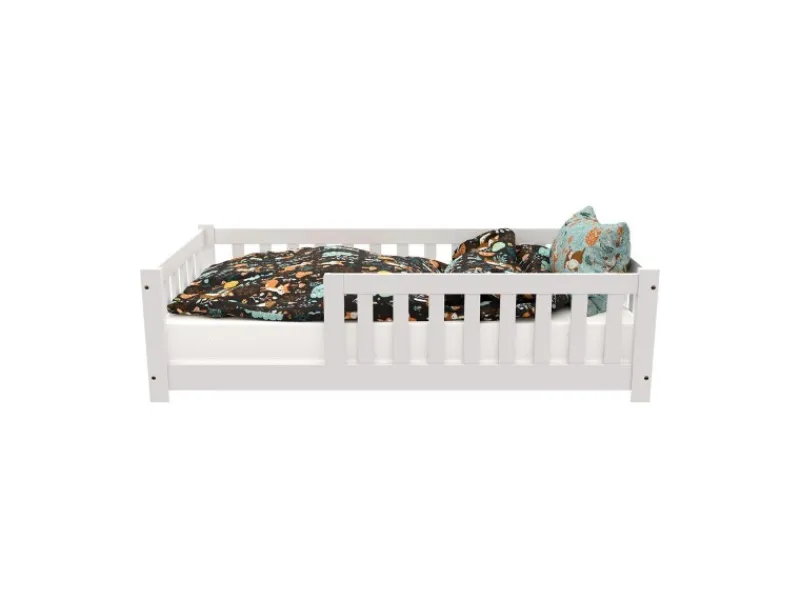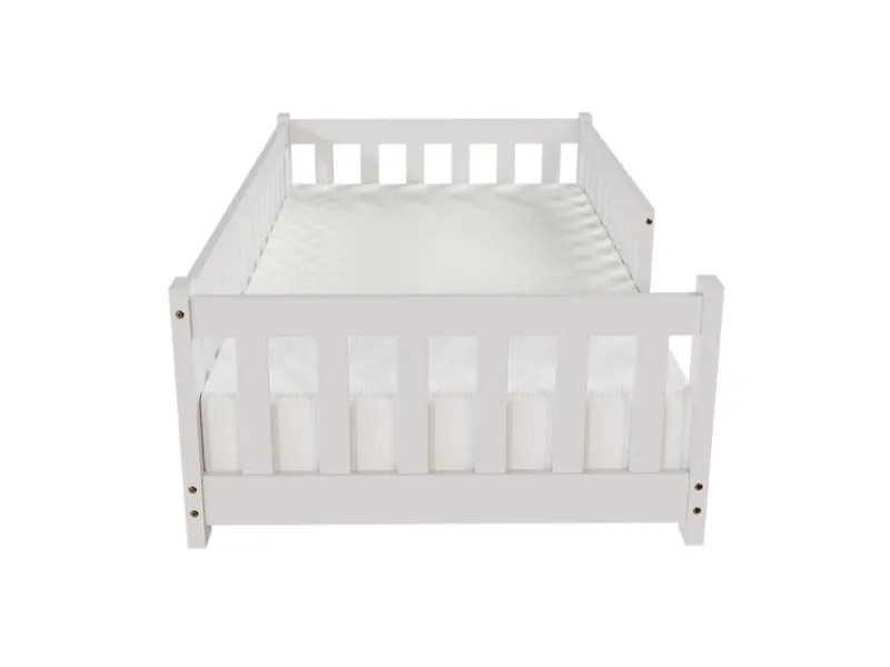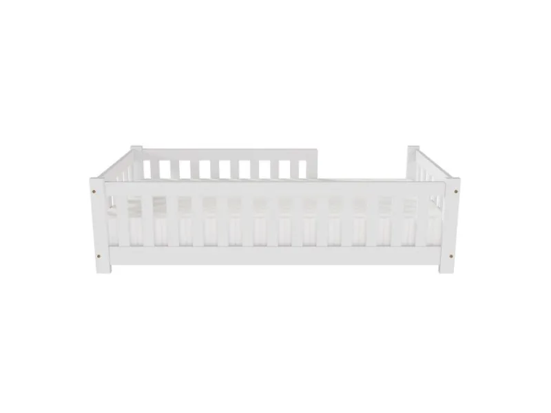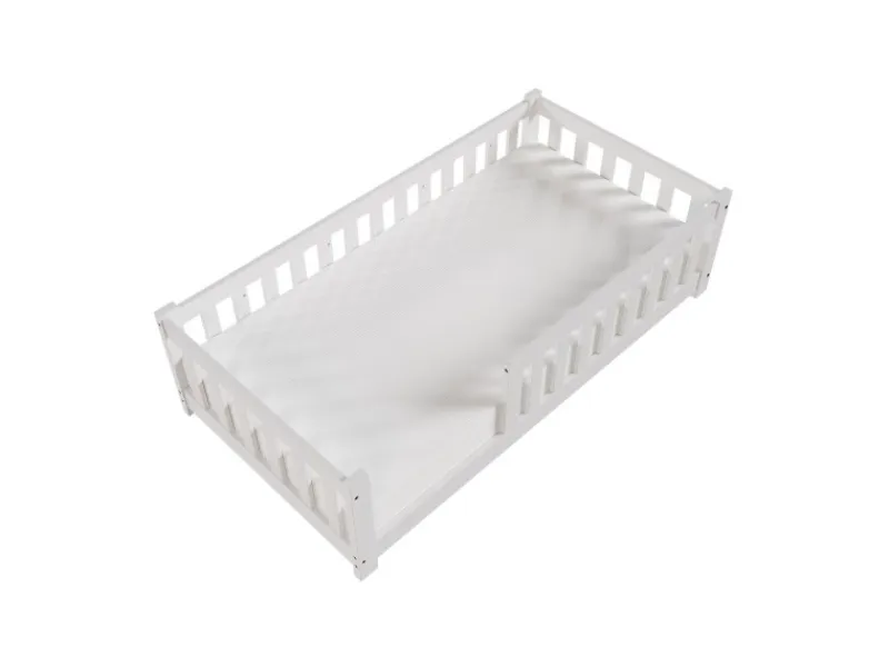 Entdecken Sie das stilvolle Kinderbett Naya mit Matratze, Lattenrost und Rausfallschutz! Als Bodenbett für Mädchen und Jungen bietet es einen sicheren und gemütlichen Schlafplatz, wobei das stabile Bettgestell aus Holz für Langlebigkeit sorgt. Das bodentiefe, kindgerechte Design zaubert ein liebevolles Ambiente ins Kinderzimmer und fördert die kindliche Entwicklung. Schaffen Sie mit dem Kinder Bett einen Ort zum Wohlfühlen und ermöglichen Sie Ihrem Kind erholsame Nächte. Produktmerkmale Rausfallschutz Bett: