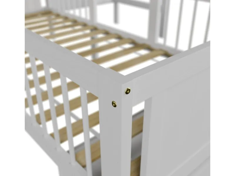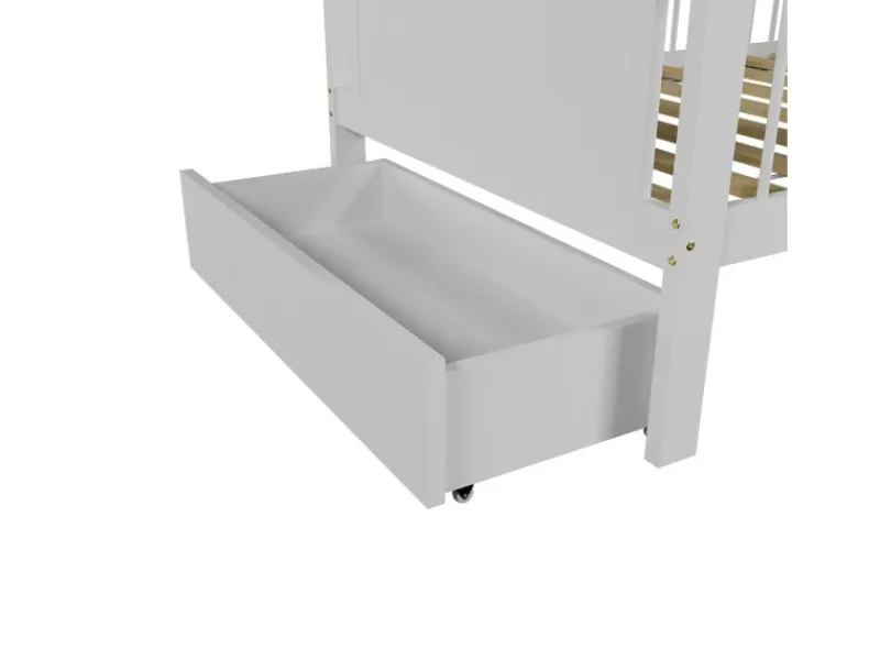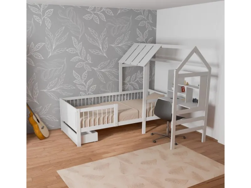 Entdecken Sie das Kinderbett Yari 90×200 cm in elegantem Weiß – die perfekte Lösung für jedes Kinderzimmer! Dieses vielseitige Kinderbett überzeugt mit einem massiven Kieferrahmen, der mit bis zu 150 kg belastbar ist. Der integrierte Schreibtisch und die praktische Schublade bieten zusätzlichen Stauraum und Funktionalität. Dank der einfachen Montage und der vielseitigen Kombinierbarkeit passtdas Jugendbett in jedes Raumkonzept. Schaffen Sie einen gemütlichen Rückzugsort für Ihre Kleinen mit dem Kinderbett Yari! Produktmerkmale Kinderbett: