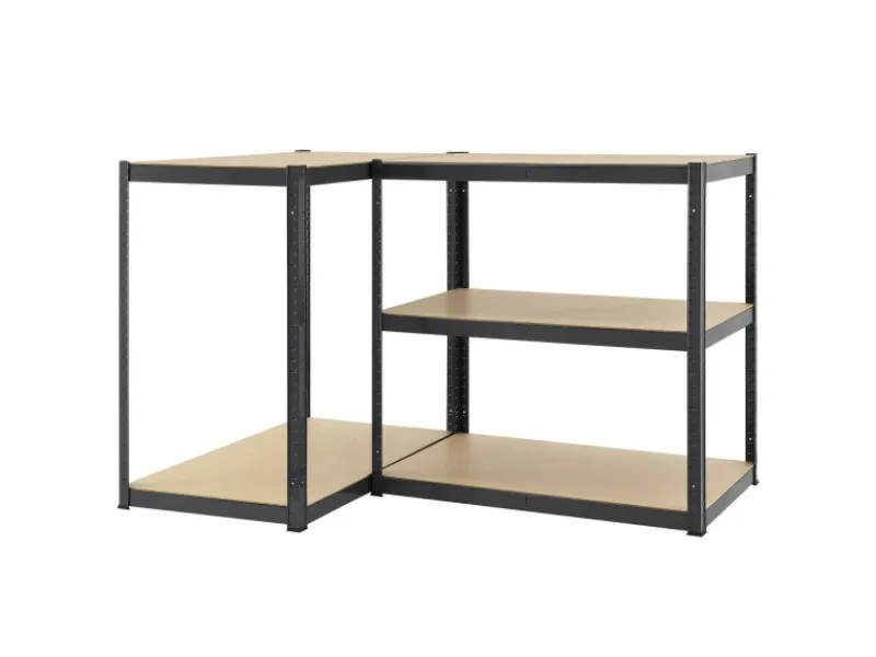 Das Lagerregal bietet Ihnen verschiedene Aufbaumöglichkeiten. Durch die zweiteiligen Streben können Sie das Regal auch als halbhohe Variante mit Arbeitsplatte aufbauen. Ideal, wenn Sie das Kellerregal unter einer Treppe aufstellen möchten.