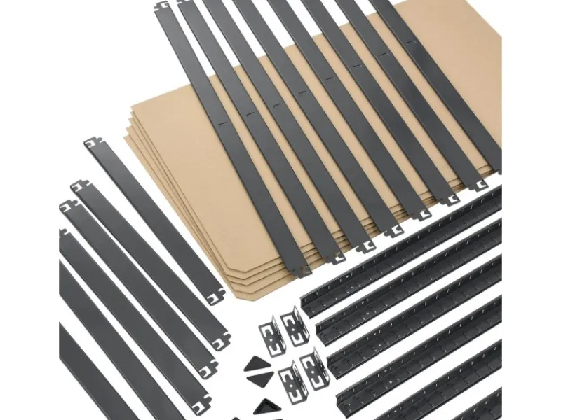 Das Schwerlastregal ist mit insgesamt fünf Einlegeböden ausgestattet. Die stabilen Einlegeböden bieten viel Platz für die Aufbewahrung von Gartenzubehör, Werkzeug, Vorräten, Kisten oder Aktenordnern.