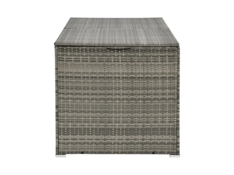 Die Aufbewahrungsbox besticht im edlen Rattan-Design. Dieses Material ist schmutzabweisend, wetter- und UV-beständig. Somit ideal für den Außenbereich geeignet. Der stylische Organizer ist zudem pflegeleicht und langlebig. Durch die kompakte Form (groß, eckig) ist die Gartenbox platzsparend.