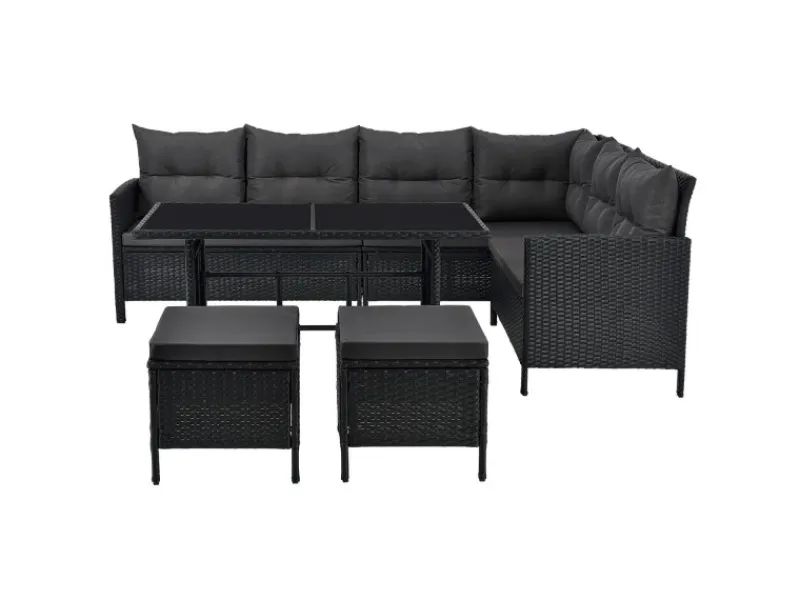 – Ecksofa, 2 Hocker & 1 Tisch – ideal für bis zu 7 Personen