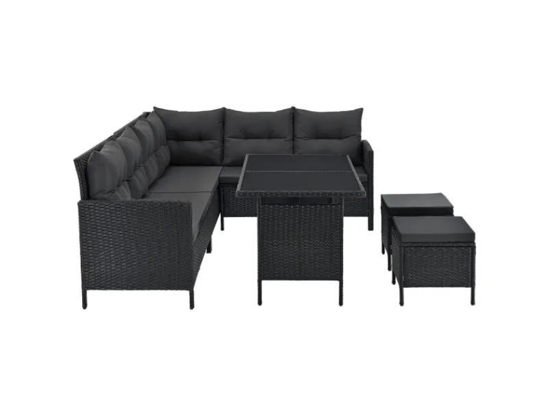 Die 5 cm dicken Sitzpolster erlauben es Ihnen über Stunden hinweg weich zu sitzen. Auch beide Hocker sind mit Auflagen ausgestattet. Sieben weitere Rückenkissen polstern Ihren Rücken weich ab.