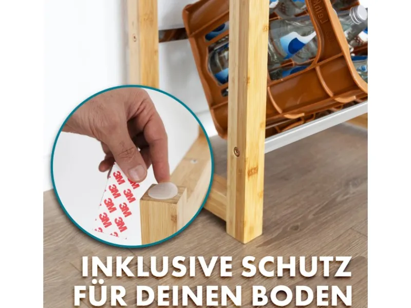 Zusammenfassend bietet der Bambus-Flaschenkastenständer Flash ein vielseitiges und robustes Lagersystem, das sich ideal für die Aufbewahrung von Getränkekästen, Wäscheboxen und vielen anderen Gegenständen eignet. Mit seinem ansprechenden Design, der einfachen Montage und der hohen Tragfähigkeit ist er die perfekte Lösung für alle, die Wert auf Ordnung, Stabilität und Ästhetik legen.