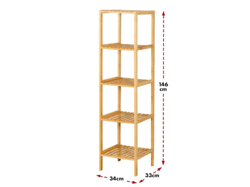 5 Etagen: 33 cm Tiefe x 34 cm Breite x 146 cm Höhe