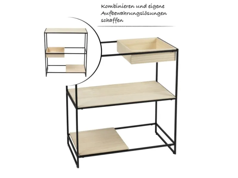 Das Dekoregal Trofast im modernen Industrial-Look besteht, neben dem Metallgerüst, aus besonders leichtem Paulowniaholz und ist daher perfekt für den Wohnbereich geeignet. Die mitgelieferten Regaleinlagen können flexibel arrangiert werden, sodass einer individuellen Gestaltung nichts im Wege steht. Verschiedene Dekorationsartikel, wie Figuren oder Blumen, können in diesem Regal optimal platziert werden und kommen wunderbar zur Geltung. Außerdem sorgt das mitgelieferte Montagematerial für einen schnellen und einfachen Aufbau.