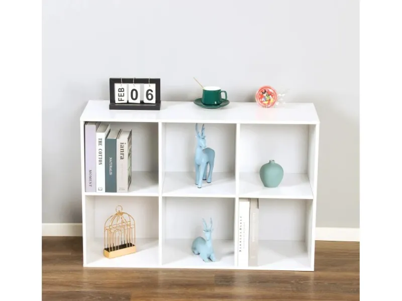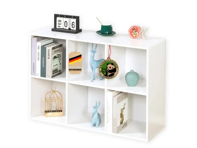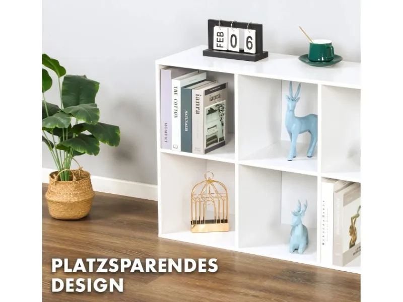 Holzregal Vermont – Stilvolle und vielseitige Aufbewahrungslösung für Ihr ZuhauseDas Holzregal Vermont ist die perfekte Lösung, um Ordnung und Stil in Ihr Zuhause zu bringen. Hergestellt aus robustem MDF in edlem Weiß, überzeugt es durch sein modernes, minimalistisches Design und seine vielseitigen Einsatzmöglichkeiten. Mit einer Größe von 29,8 cm Tiefe x 91,2 cm Breite x 61 cm Höhe fügt sich dieses platzsparende Regal mühelos in jeden Wohn- oder Schlafraum ein.Das Regal verfügt über sechs geräumige Fächer, die Ihnen vielfältige Aufbewahrungsmöglichkeiten bieten. Nutzen Sie es, um Bücher, Dekorationsartikel, Pflanzen oder Aufbewahrungsboxen stilvoll in Szene zu setzen. Ob als Bücherregal, Aufbewahrungsregal oder Dekoelement – die großzügigen Fächer sorgen für eine ordentliche und übersichtliche Organisation Ihrer Gegenstände.Das zeitlose, moderne Design des weißen Bücherregals passt harmonisch in jede Einrichtung. Es verleiht Ihrem Raum eine elegante Note, ohne dabei aufdringlich zu wirken. Dieses Regal ist ein echter Blickfang, der gleichzeitig praktisch ist und Ihnen ermöglicht, Ihre Wohnaccessoires stilvoll zu präsentieren.Dank des hochwertigen Materials ist das Regal besonders stabil und langlebig. Die robuste Konstruktion gewährleistet eine hohe Belastbarkeit, sodass es auch schwere Bücher oder größere Dekorationsartikel sicher tragen kann. Es ist die ideale Wahl, wenn Sie nach einer langlebigen und zuverlässigen Aufbewahrungslösung suchen.Die einfache Montage ermöglicht es Ihnen, das Regal schnell und mühelos aufzubauen. Mit der klaren Anleitung steht es innerhalb weniger Minuten bereit, um Ihren Raum aufzuwerten.Ob im Wohnzimmer oder Schlafzimm er, das Vermont Holzregal fügt sich nahtlos in jeden Raum ein und bietet eine stilvolle und funktionale Lösung für Ihre Aufbewahrungsbedürfnisse. Holen Sie sich dieses vielseitige Regal und genießen Sie eine aufgeräumte, moderne Wohnatmosphäre!Holzregal Vermont – Produkteigenschaften:Material: Hochwertiges MDF in WeißGröße: 29,8 cm Tiefe x 91,2 cm Breite x 61 cm HöheFächer: 6 geräumige Fächer für vielseitige AufbewahrungDesign: Zeitloses, modernes und minimalistisches DesignPlatzsparend: Ideal für Wohnzimmer und SchlafzimmerVielseitig: Kann als Bücherregal, Aufbewahrungsregal oder Dekorationsregal verwendet werdenStabil und langlebig: Robuste Konstruktion mit hoher BelastbarkeitEinfache Montage: Schneller Aufbau dank klarer Montageanleitung