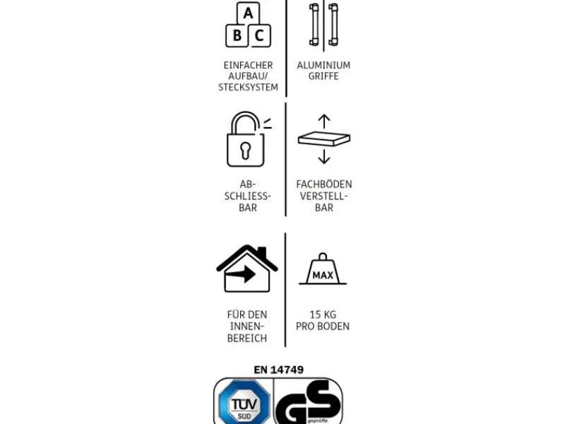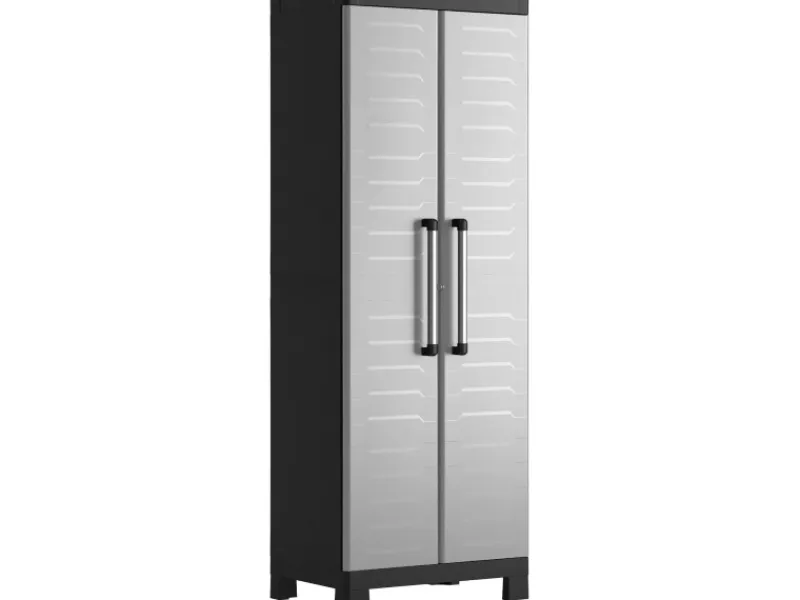 Die abschließbaren Türen des Schranks im DIY-Look bieten zusätzliche Sicherheit. Dieser Schrank eignet sich ideal für Personen, die eine gut organisierte Aufbewahrungslösung für ihre Garage, Keller oder Hobbyraum suchen.