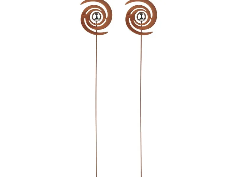 2er Set Beetstecker mit Spiralmotiv und silberner Kugel als Blickfang im Garten