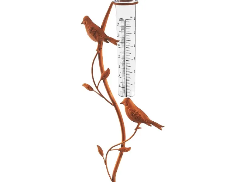 Dekorativer Gartenstecker mit Regenmessglas und Vögeln für Blumenbeet oder Rasen