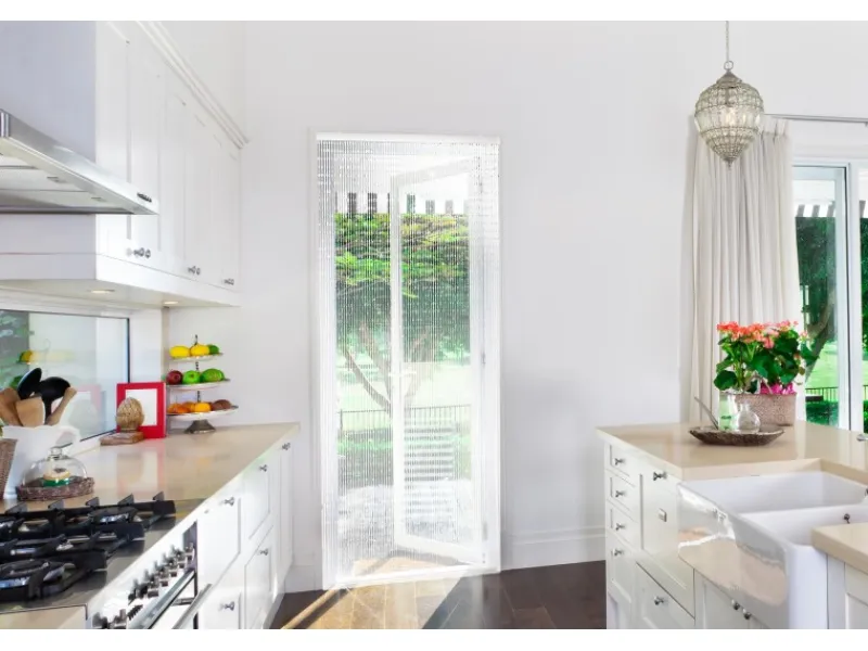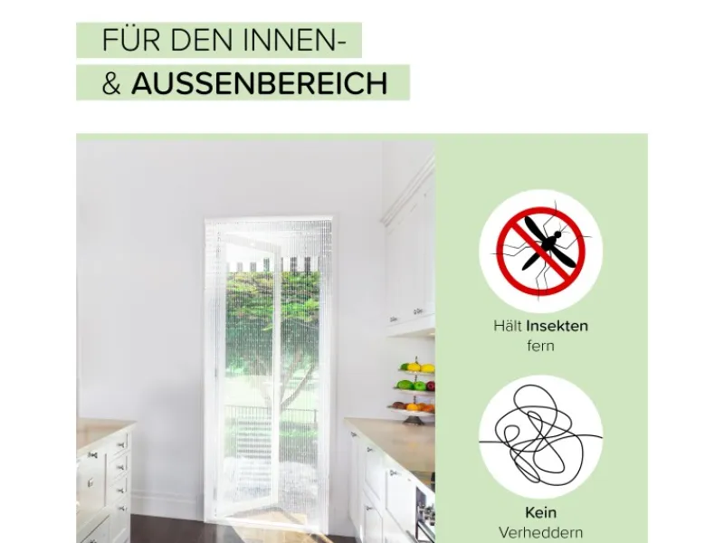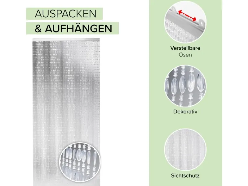 Dekorativer Türvorhang mit Perlen als Insektenschutz durch eng anliegende Kunststoffelemente