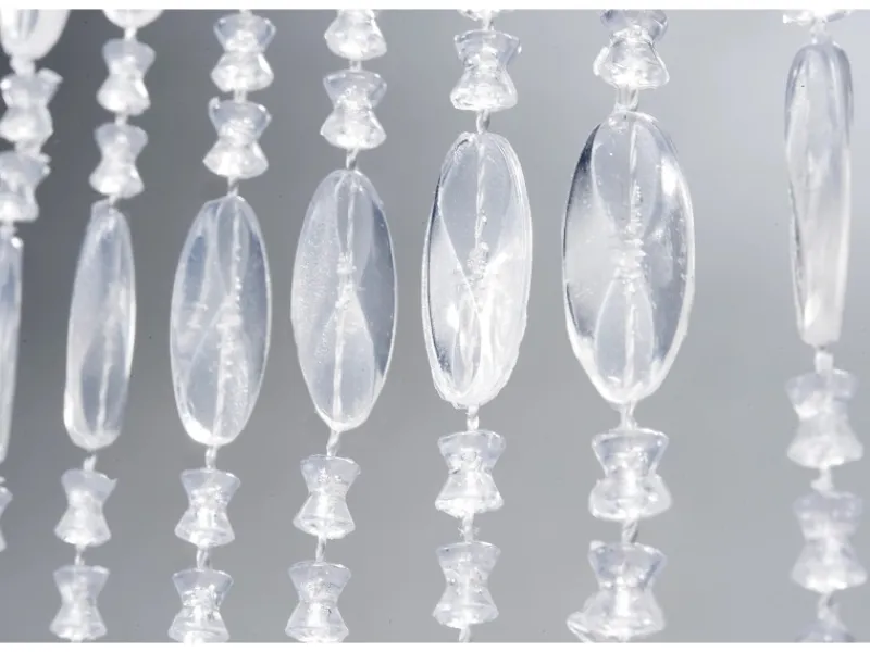 Robuster Türvorhang aus Kunststoff mit kunstvollen Perlen und zauberhaftem Lichtspiel