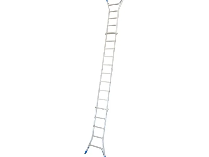 Sie ist als Anlege-, Doppel-Stehleiter und Arbeitsbühne eisetzbar. Dabei sorgt ihr patentiertes ClickMatic-System für eine komfortable Höhenverstellung, die ihre Nutzung in Treppenbereichen ermöglicht.