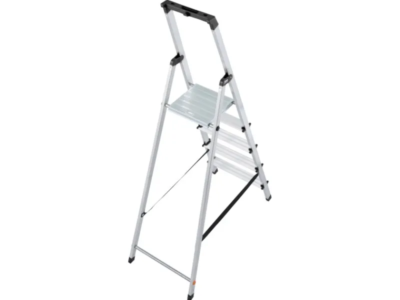 Eine stabile, 6-fach vernietete Stufen- und Holmverbindung sorgt für Langlebigkeit und Standfestigkeit. Abgerundet wird das Sicherheitskonzept durch rutschhemmende Fußkappen.