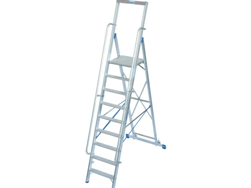 Im aufgebauten Zustand ist die Leiter leicht zu verfahren, während sie auch im zusammengeklappten Zustand ergonomisch zu transportieren ist. Dank der schnellen Klappfunktion lässt sich die Leiter platzsparend unterbringen. Zusätzlich sorgen integrierte Zug- und Drucksicherungen für einen stabilen und sicheren Stand.