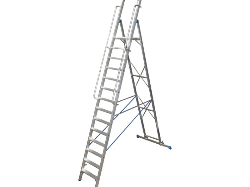 Die profilierten sowie 8 cm tiefen Stufen sind fest mit den Holmen verbördelt und versprechen Ihnen ebenso wie die beiden integrierten Handläufe einen sicheren und komfortablen Auf- und Abstieg.